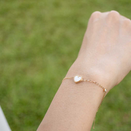 Solid Yellow Gold Mother of Pearl & Moissanite Bracelet