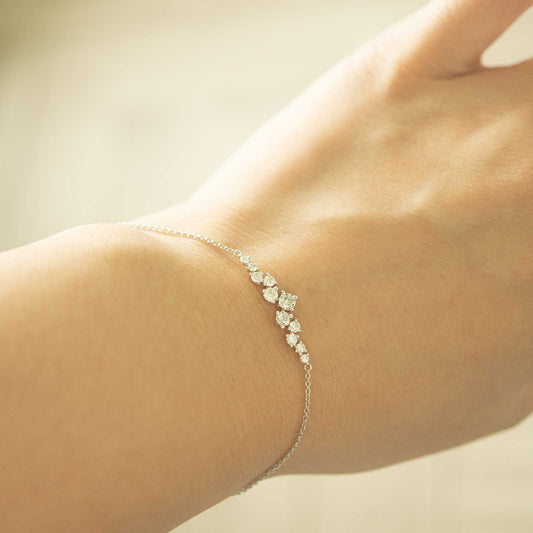 Solid White Gold Cluster Moissanite Bracelet