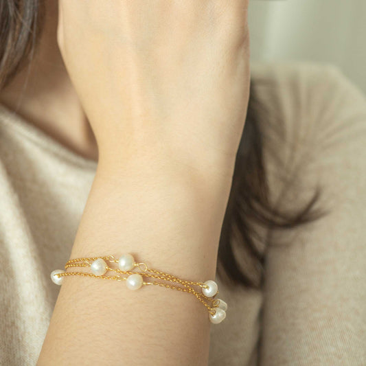 Solid Yellow Gold Mother of Pearl & Moissanite Bracelet