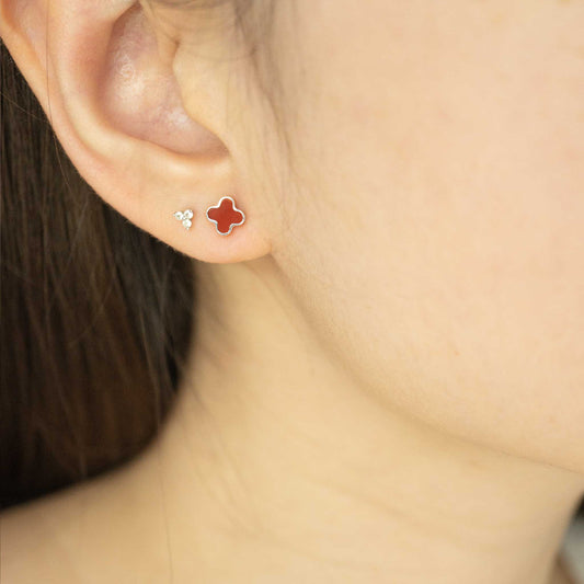 Solid Yellow Gold Mother of Pearl Clover Studs