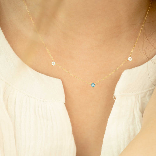 Solid Gold Initial and Birthstone Necklace