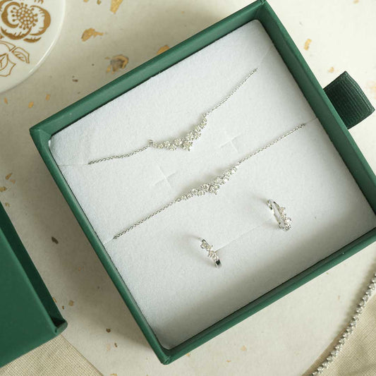 Solid White Gold Tri Moissanite Necklace