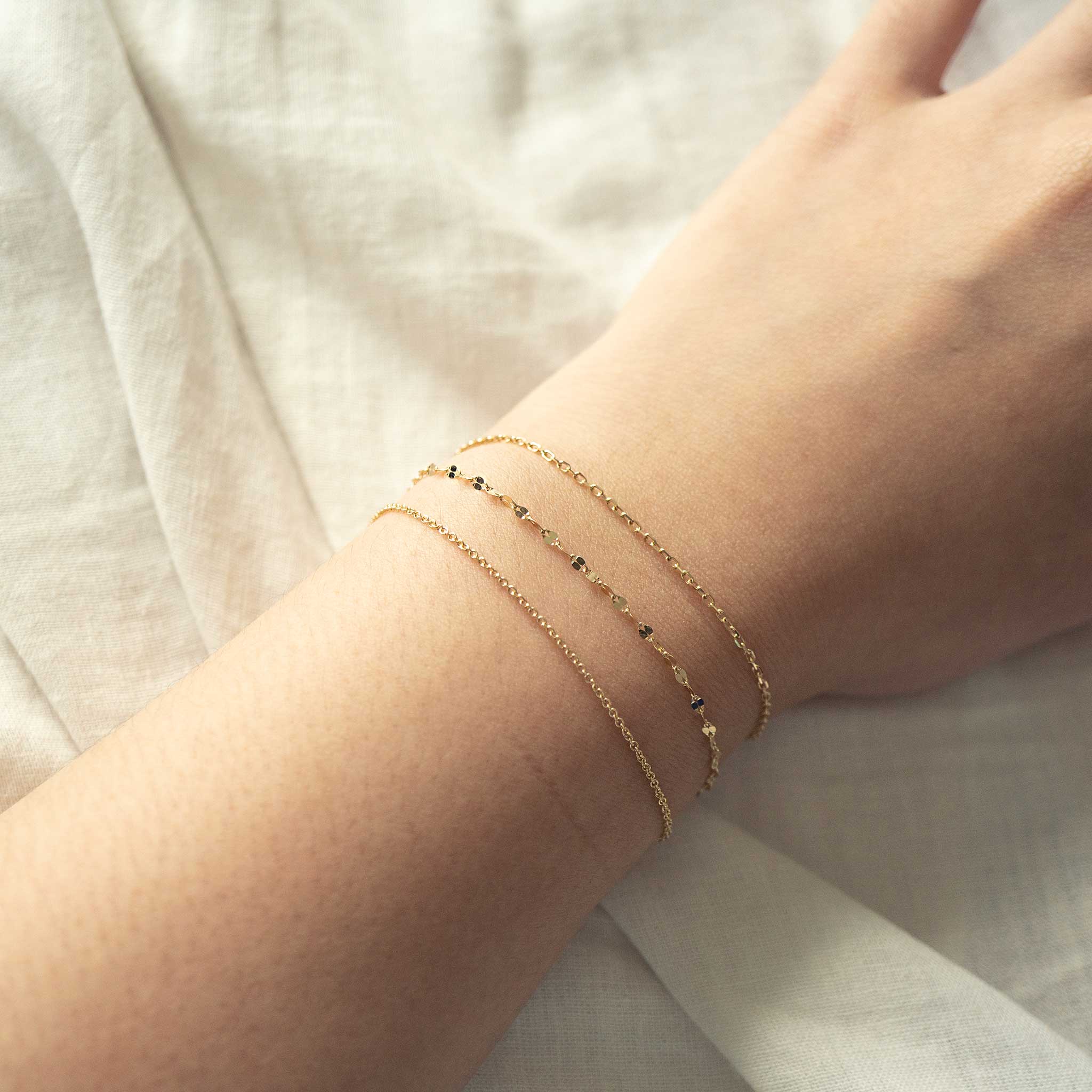 Your permanent jewellery is made to be worn every day. 14K solid gold is durable and can withstand contact with water — so showering with it isn’t an issue. To keep its shine at its best, we recommend minimising prolonged exposure to chlorine or salt water. While sturdy, your bracelet or anklet may still snap if subjected to sudden or excessive tugging, so a little care will go a long way.