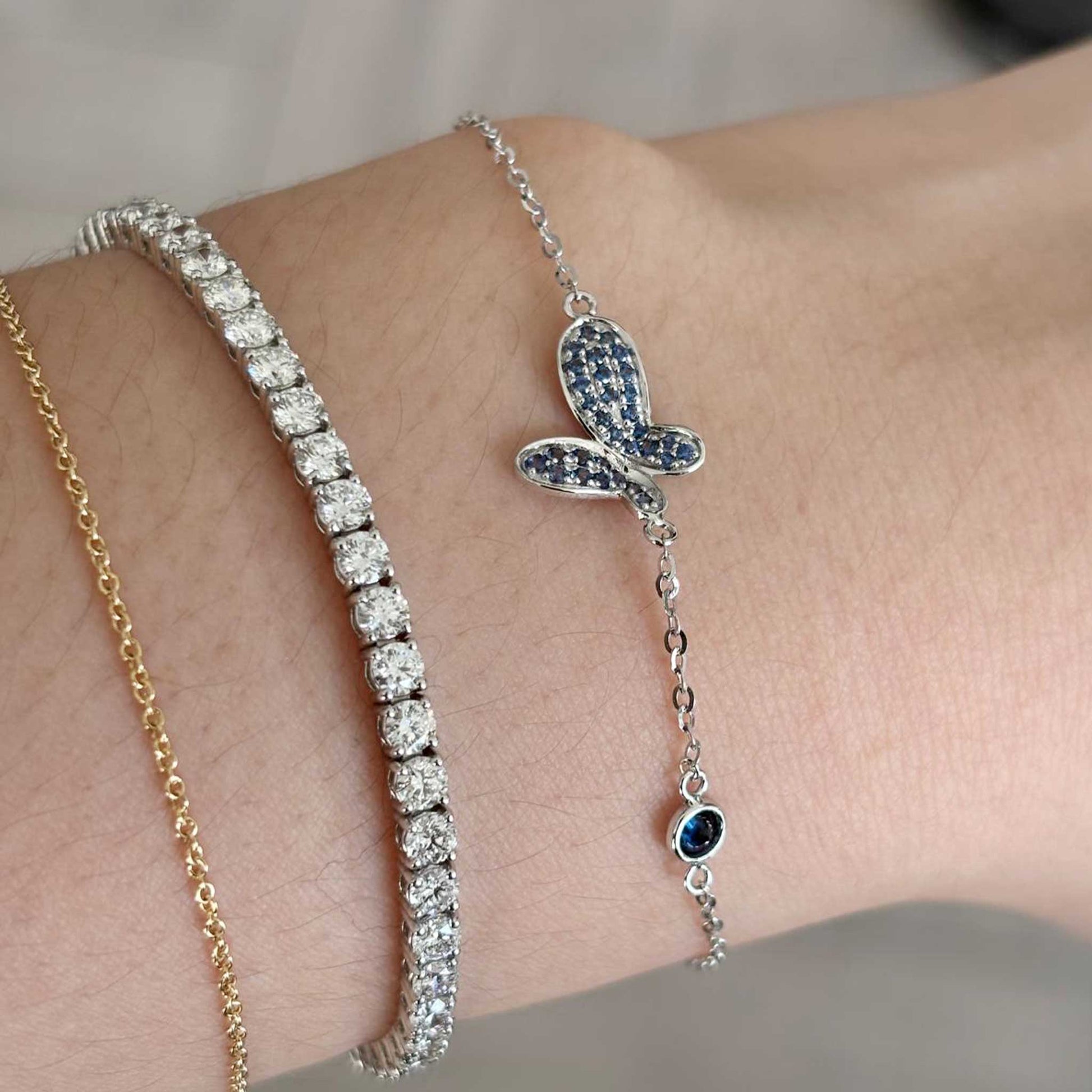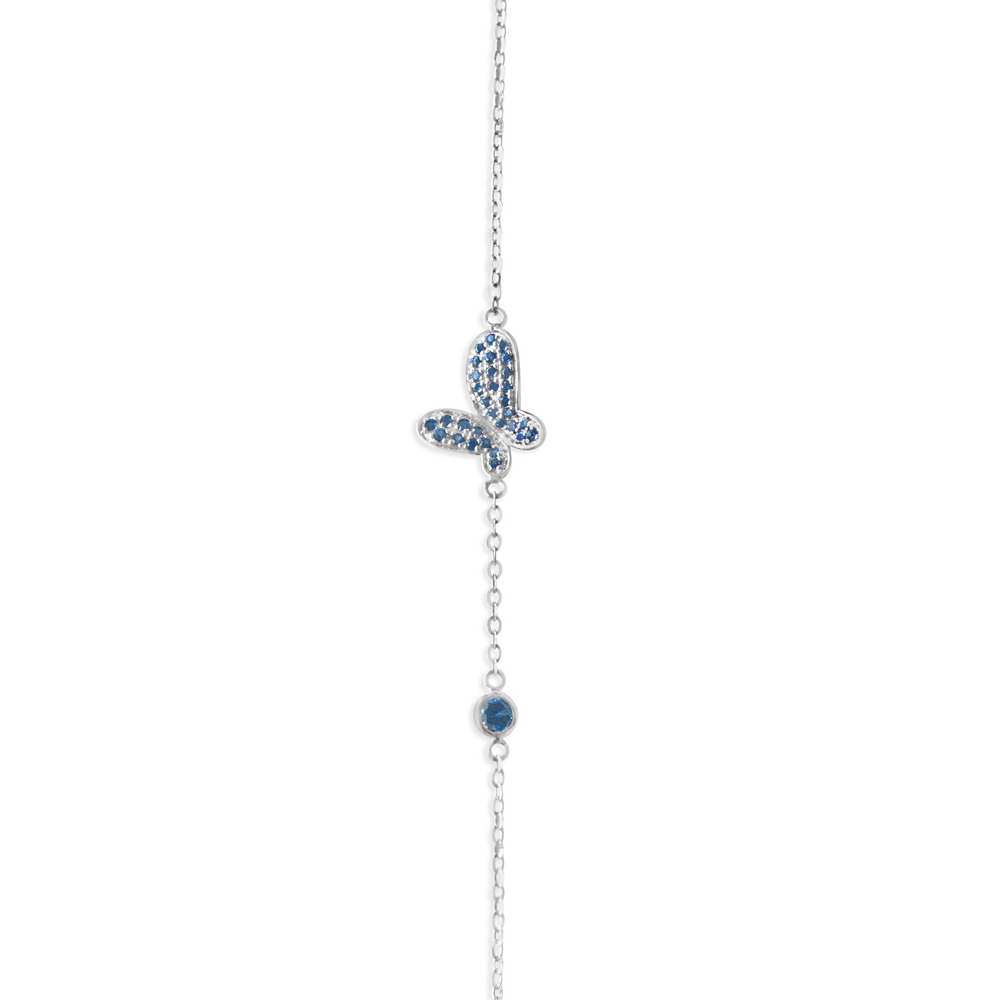 Solid White Gold Blue Sapphire Butterfly Bracelet